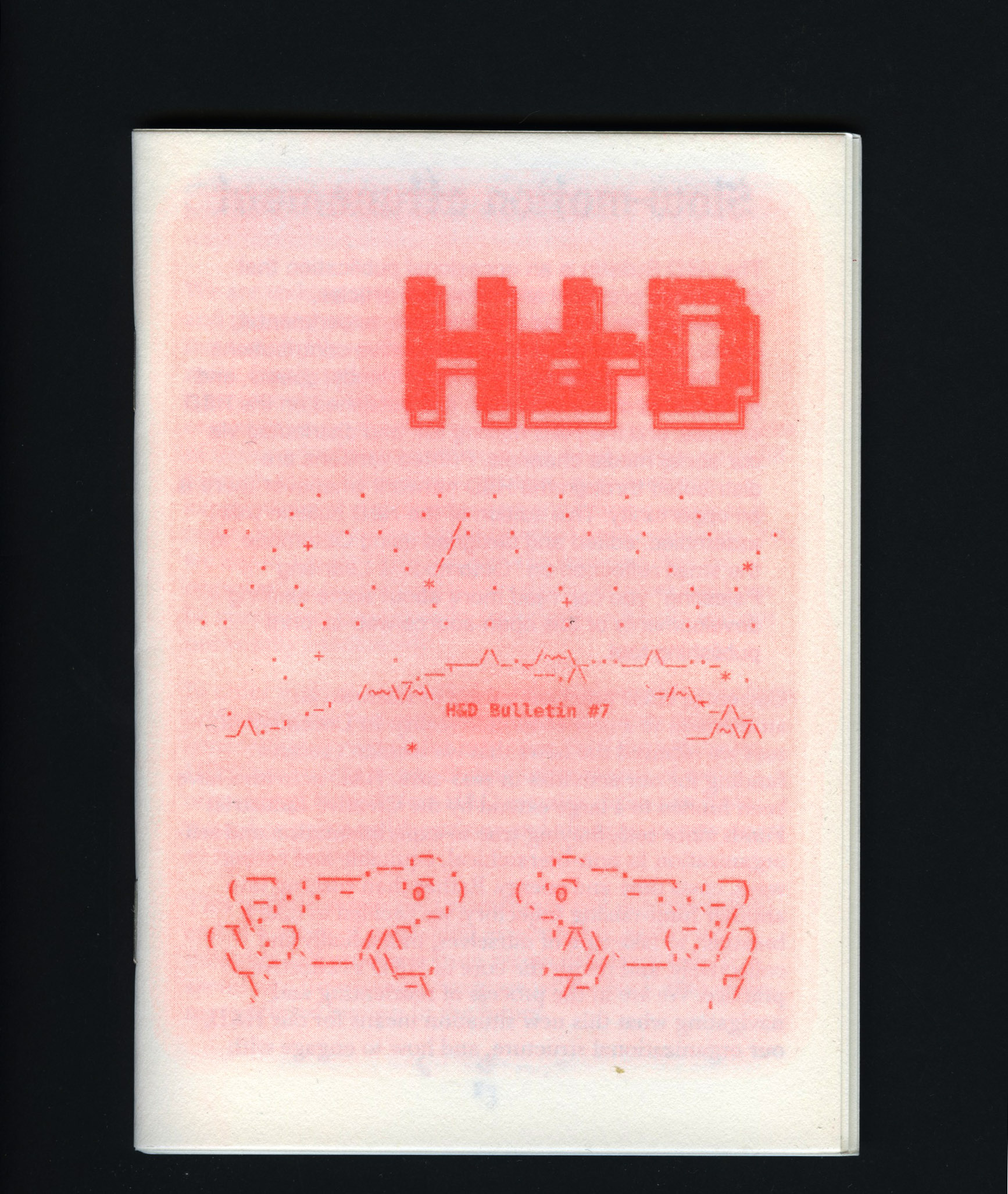 📭 The 7th H&D Bulletin – H&D's quasi-quarterly publication is available to read online and to order as printed matter (Riso printing! €8,00 + shipping costs).